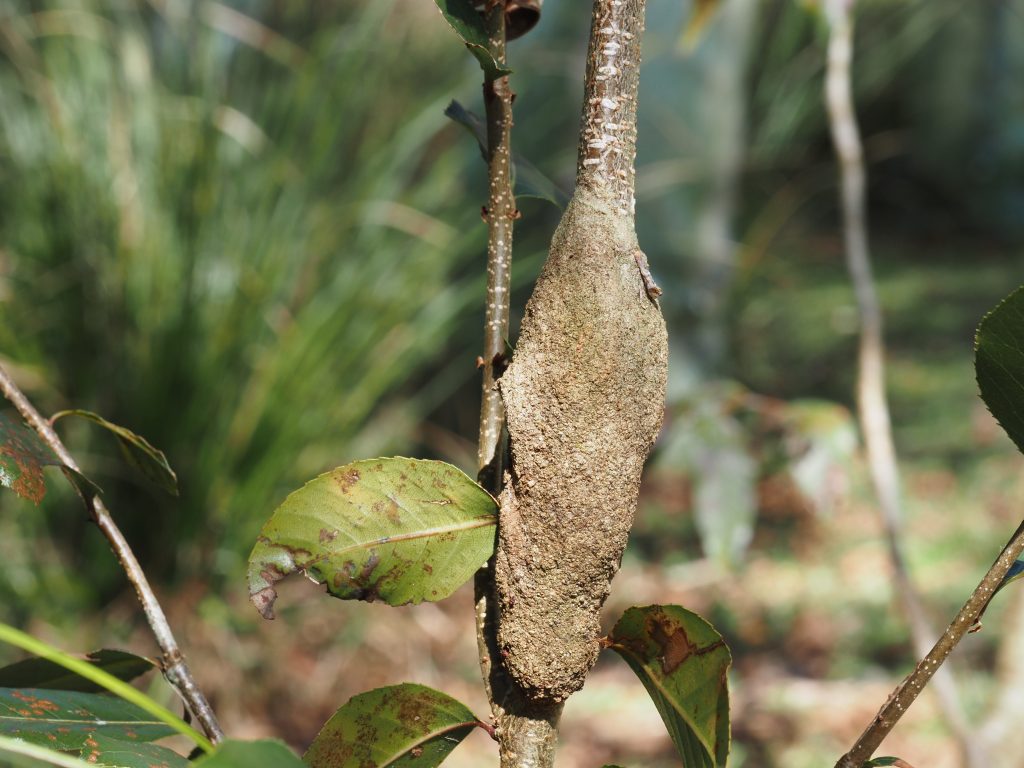 Larvae feed internally in saplings of several species here on our property at Tallowwood Ridge. The entrance to their tunnel is usually within a metre of the ground. Their known food-plants growing here are