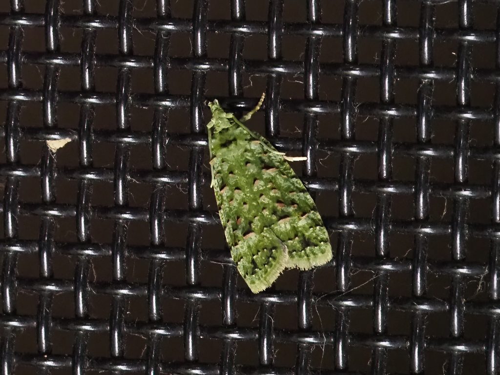 Phycomorpha prasinochroa is the only moth we’ve seen in this family. It occurs in southern Queensland and New South Wales. We have seen it in January.