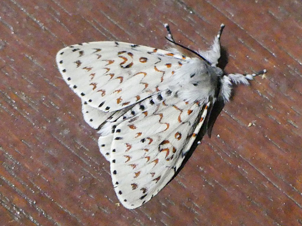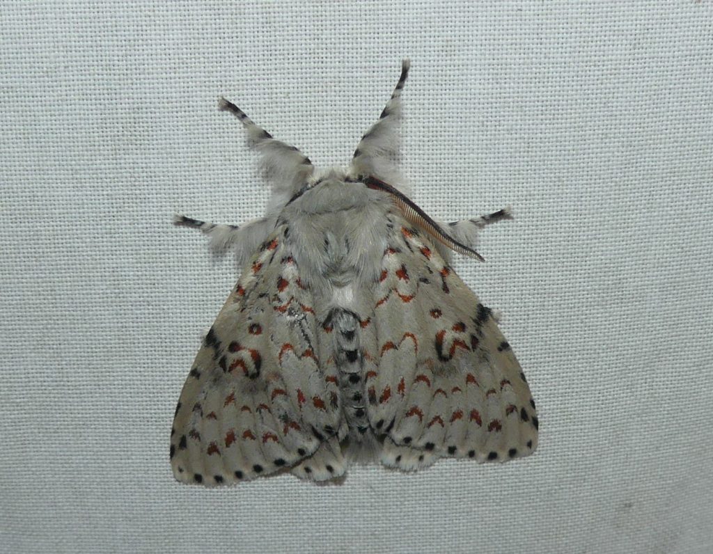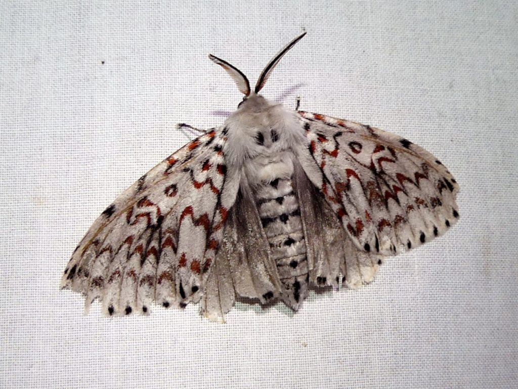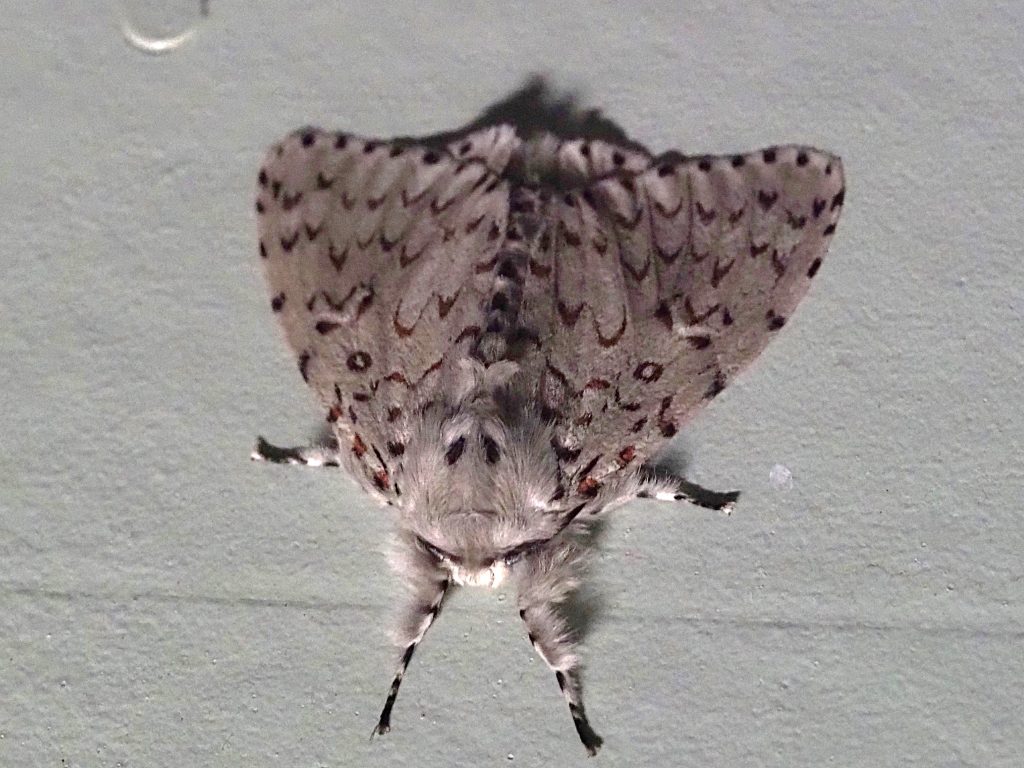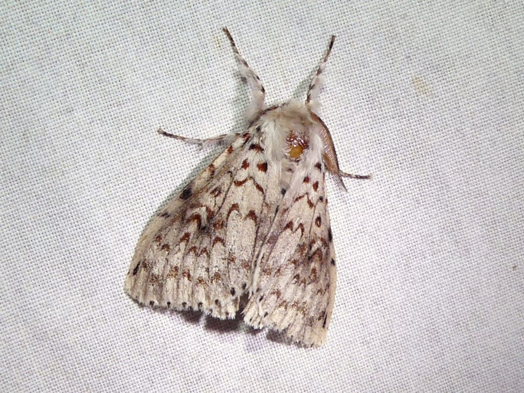 Lymantria nephrographa is found in southern Queensland and New South Wales. We have seen this moth from September to March. The female has bolder markings than the male.