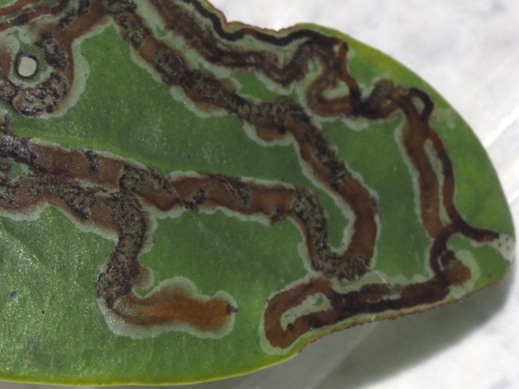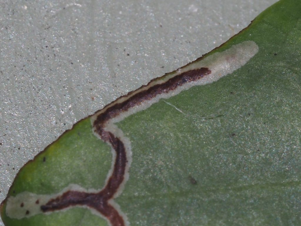 We have found caterpillars mining in the leaves of PHYLLANTHACEAE: Breynia oblongifolia and successfully bred one through to hatching. It is also said to feed on EUPHORBIACEAE: *Euphorbia sparrmanii.