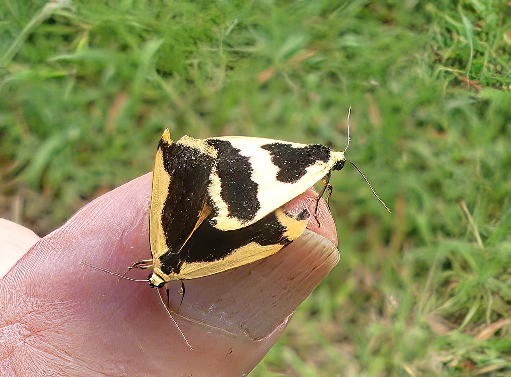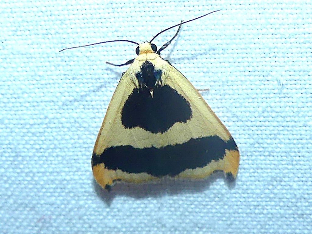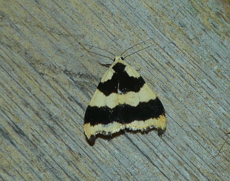 According to a moth expert (AK) this genus may need more work to determine these two species. Although various sites mention differences in the black markings – whether or not they reach the margins of the forewings – this is often conflicting and there remains some doubt as to its validity. We have therefore decided to include all our photos of the two species on the one page.