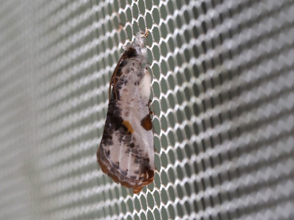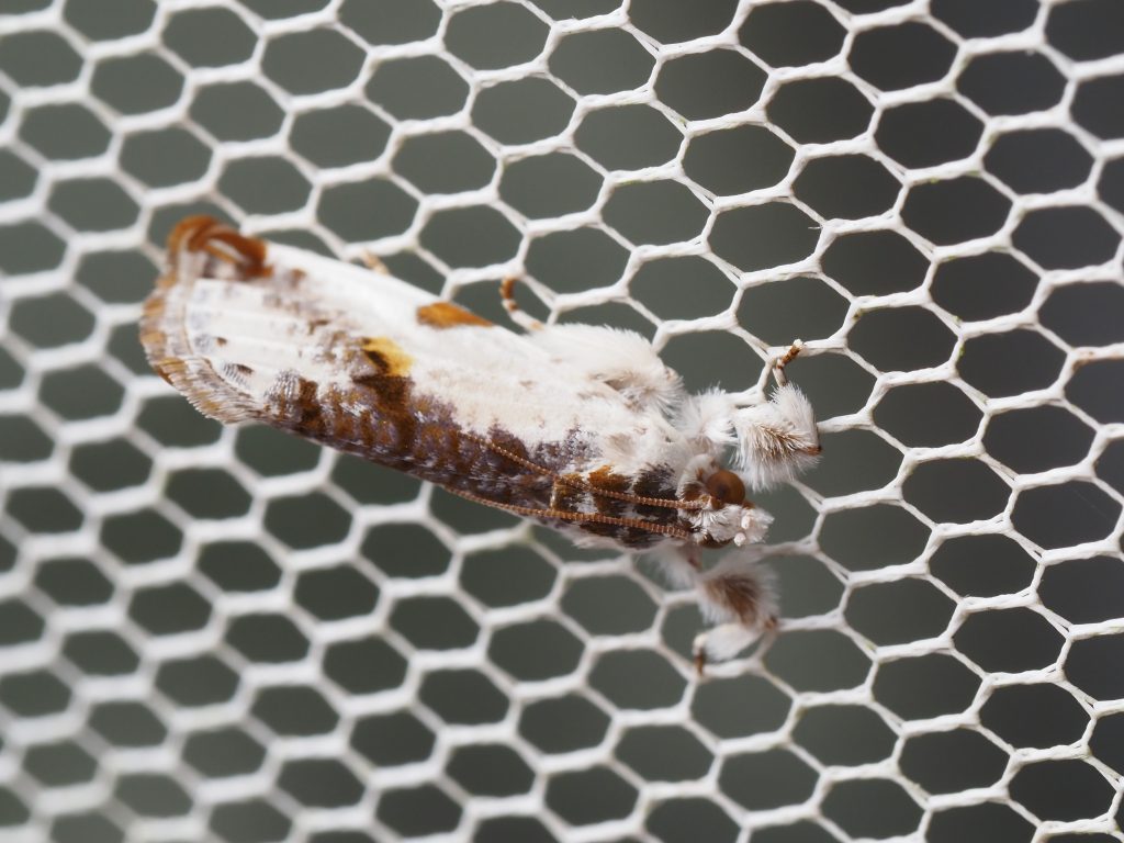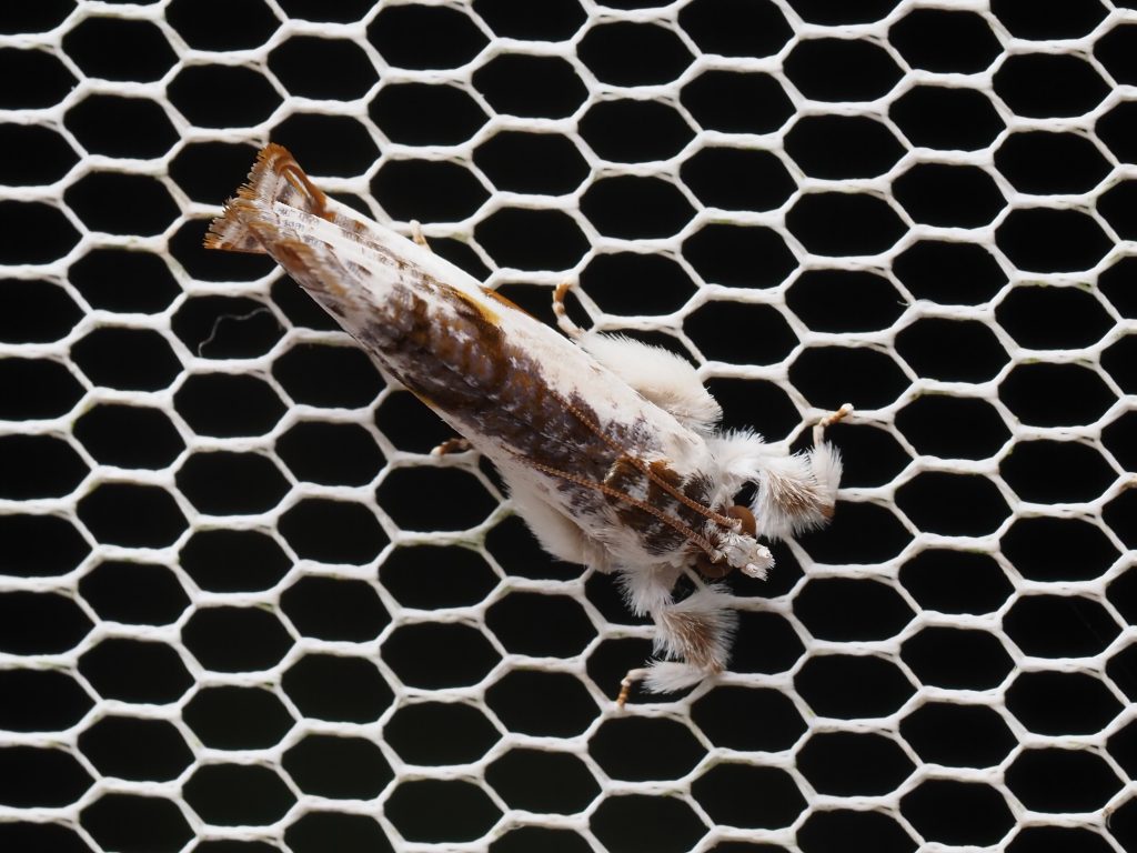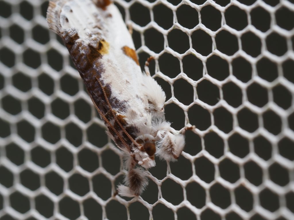 Trymalitis optima is found in Queensland and northern New South Wales. We have seen this moth from October to February. Its legs and palps are furry.
